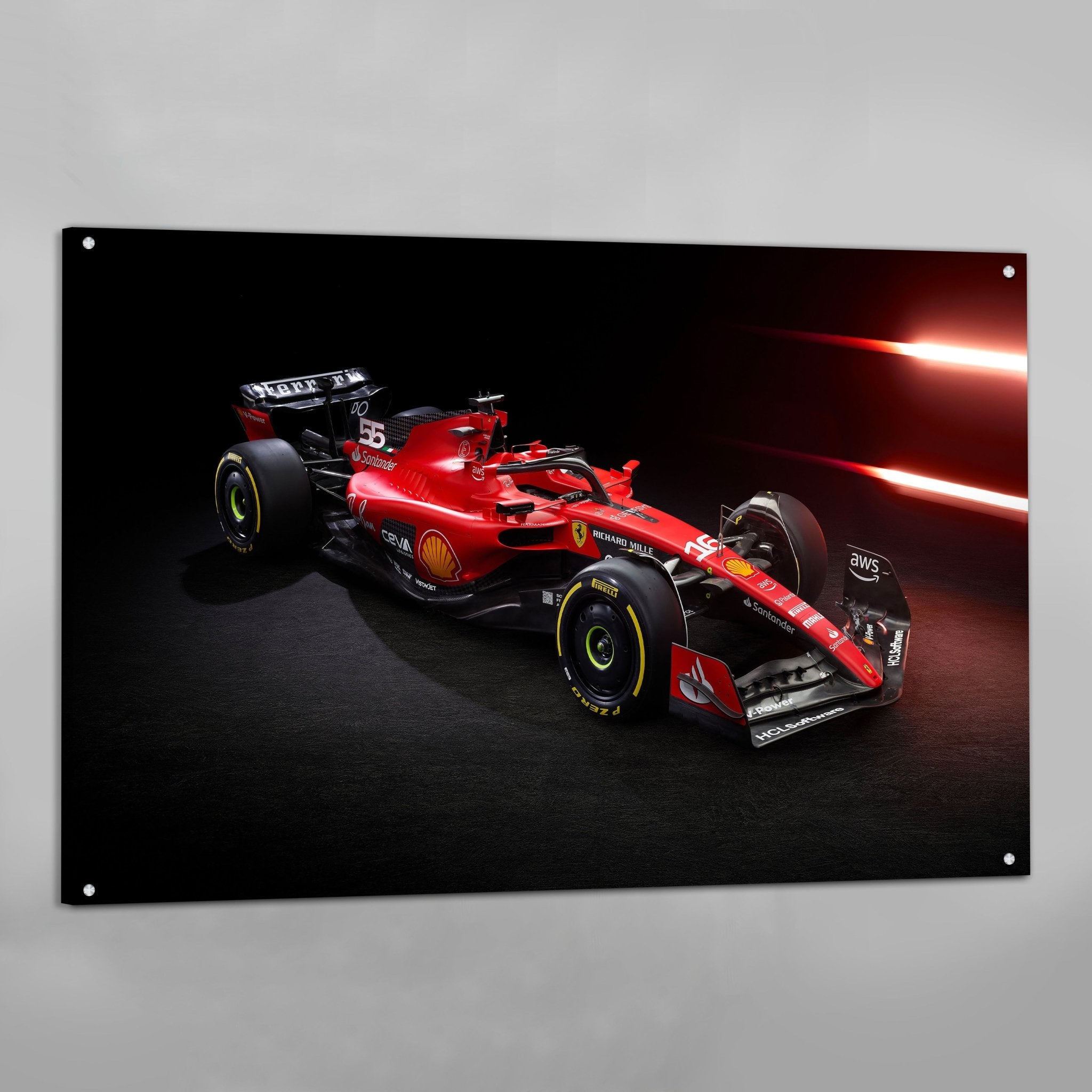 This Formula 1 wall art is produced using professional-grade fade-resistant inks on heavyweight gallery canvas, mounted over a solid wood stretcher frame for a perfectly taut, ready-to-hang finish. The deep black tones are reproduced with exceptional depth and richness, ensuring the red of the car pops with maximum visual impact. No frame needed — just hang it and let it speak for itself.